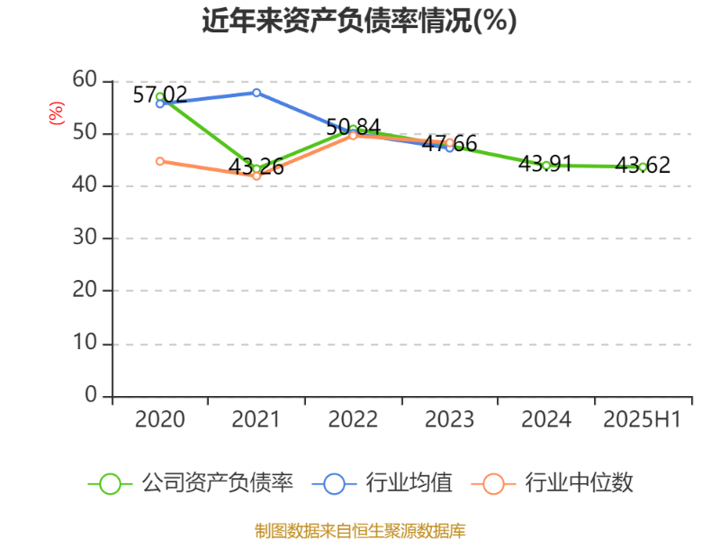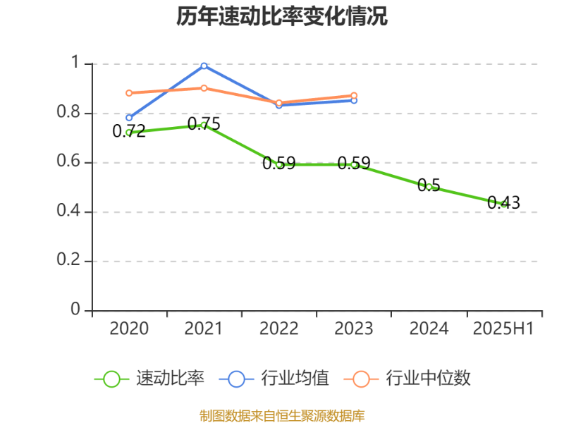 2025年上半年,公司流动比率为0.66,速动比率为0.43。