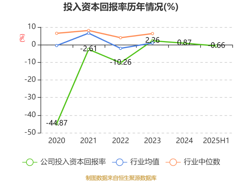 盈利能力方面, 2025年上半年公司加权平均净资产收益率为-1.56%,同比下降3.32个百分点。公司2025年上半年投入资本回报率为-0.66%,较上年同期下降2.46个百分点。