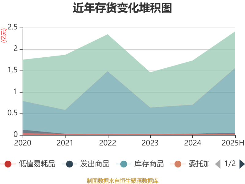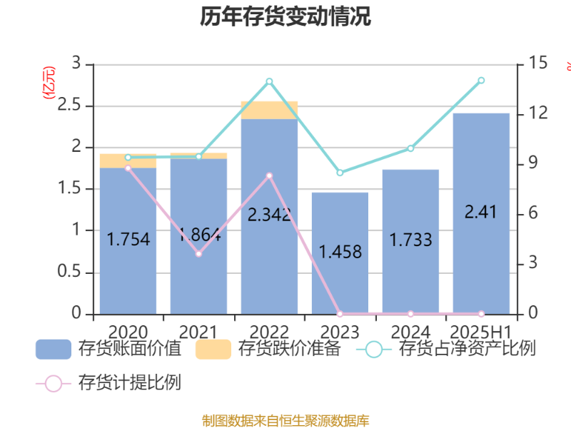 从存货变动来看,截至2025年上半年末,公司存货账面价值为2.41亿元,占净资产的14.03%,较上年末增加6773.12万元。公司本期没有计提存货跌价准备。